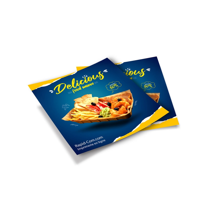 Encombrement maitrisé, Praticité maximum, le flyer format carré 12 x 12 cm résolument moderne. Idéal pour les budgets serrés ! Vous débutez votre activité ? Ce flyer est fait pour vous. Evénements, Promotions, Lancement d'activité, nous vous recommandons ce Flyer.